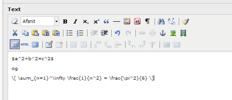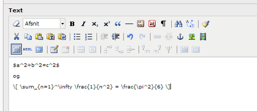Tilsvarende kan du sætte matematiske udtryk ind i nyheder og arrangementer. Du skal gentage punkt 2 ovenfor på din singlevisningsside for nyheder og på din singlevisningsside for arrangementer. Det er de to sider, hvorpå der ligger et nyhedsplugin med Detail view (SINGLE).